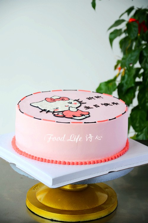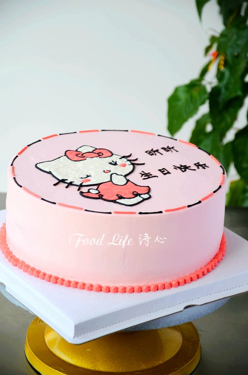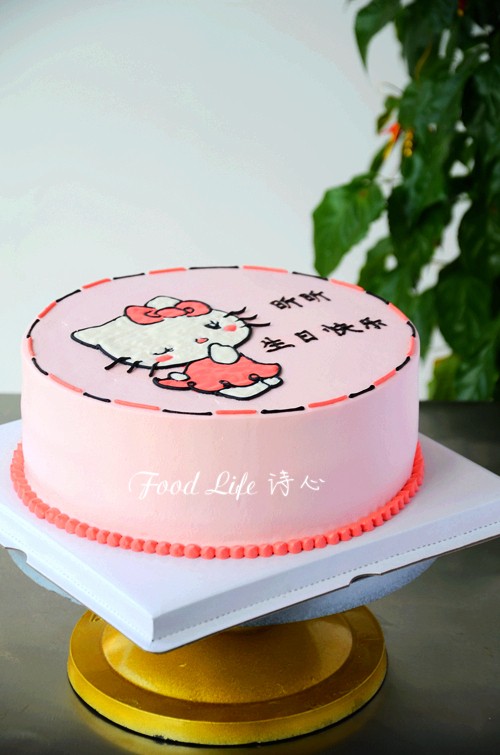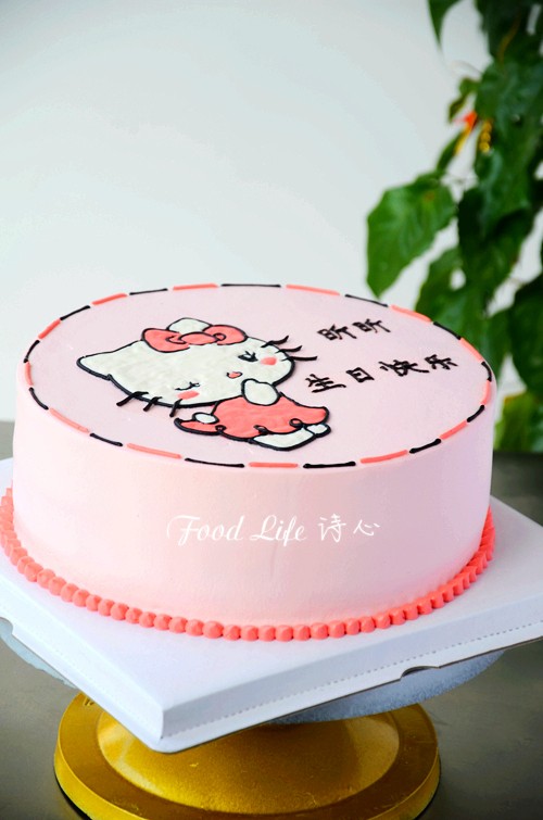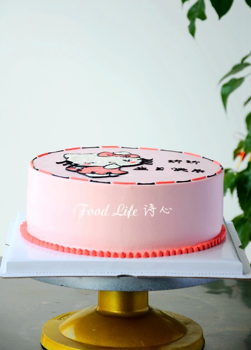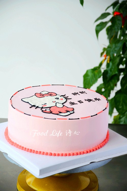 9:剩余的400克淡奶油,加几滴粉红色的试用色素打成粉色淡奶油,完成直角抹面。