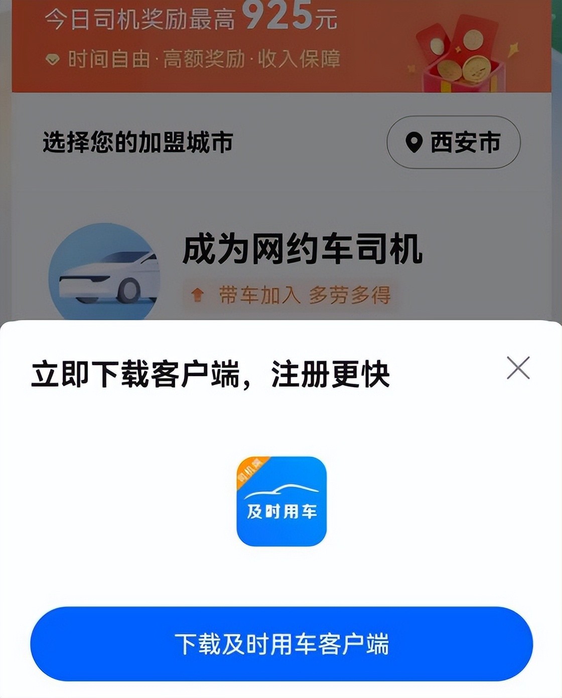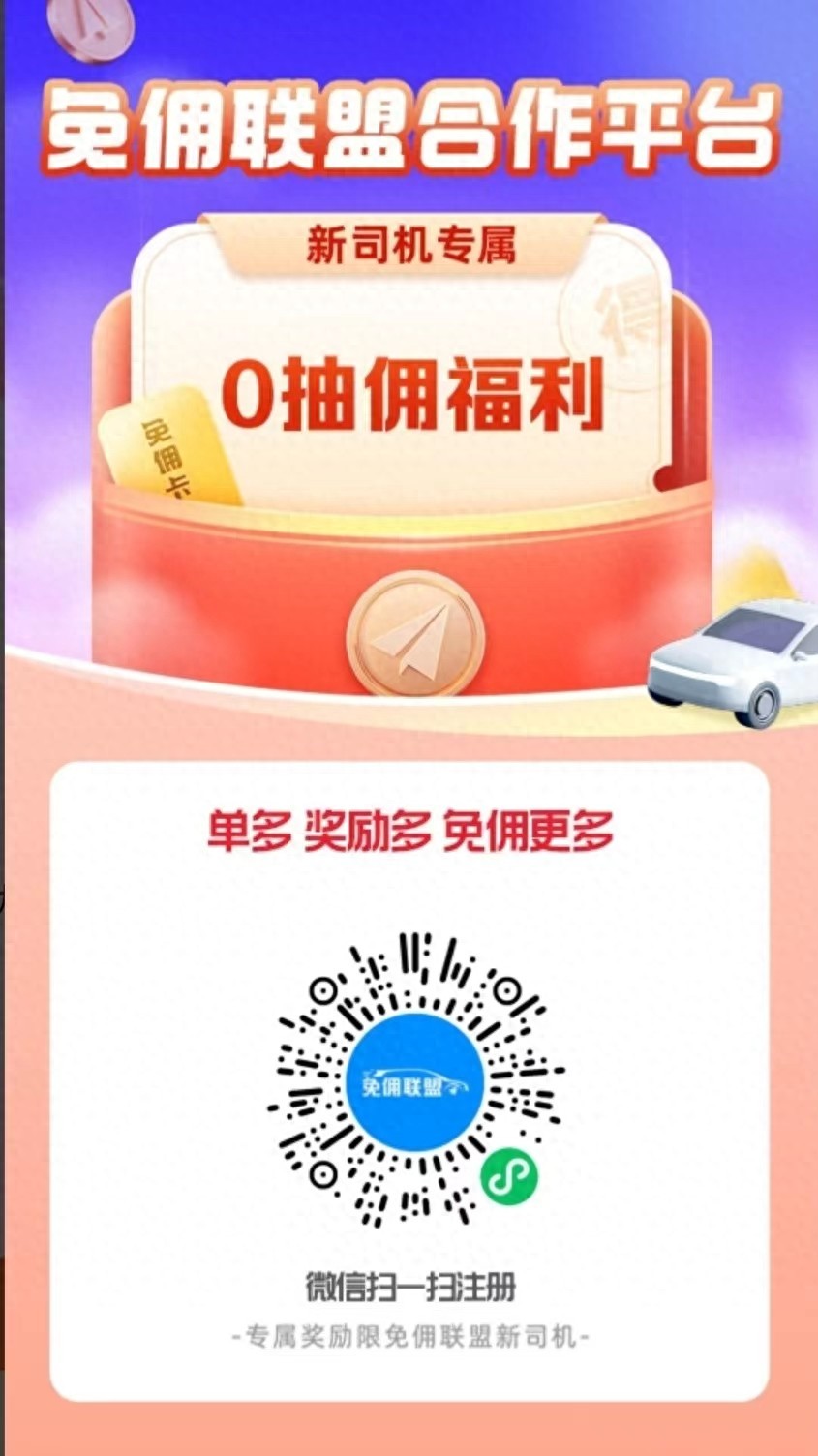 1、首先通过司机招募活动,进入免佣联盟,就能够见到一个招募司机活动的注册入口。
