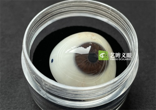 玻璃义眼,其制作材料为特种玻璃,具有很高的硬度及强度,表面光滑,易于润湿,但制作工艺难度较高,易碎,且玻璃义眼较重,长期佩戴容易造成眼睑外翻松弛、下垂等。
