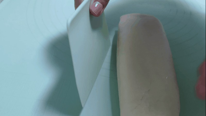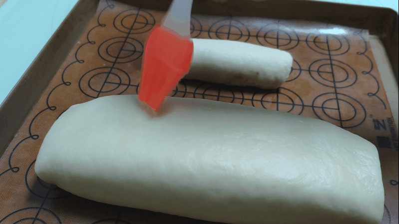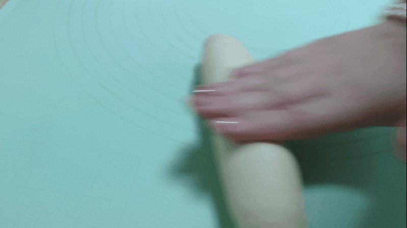 4.饧发好的面团揉搓成长条。