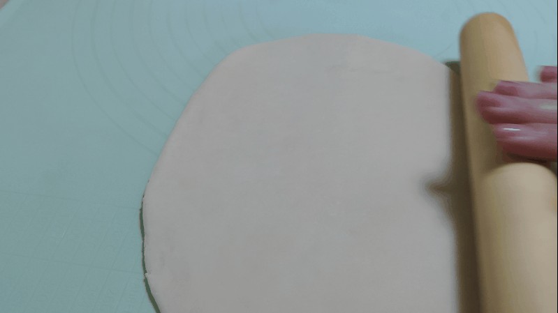 5.用擀面杖尽量擀成长方形。