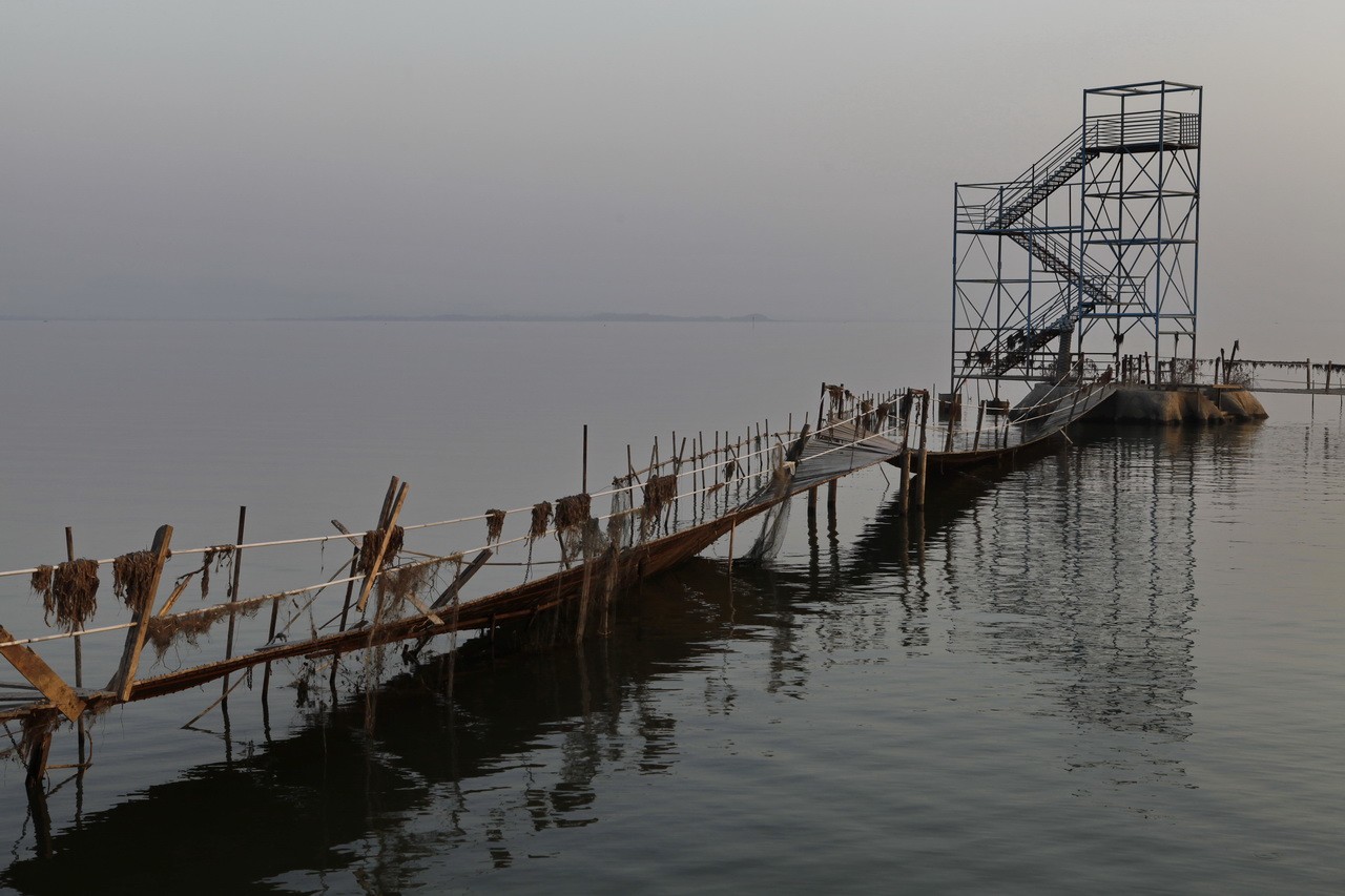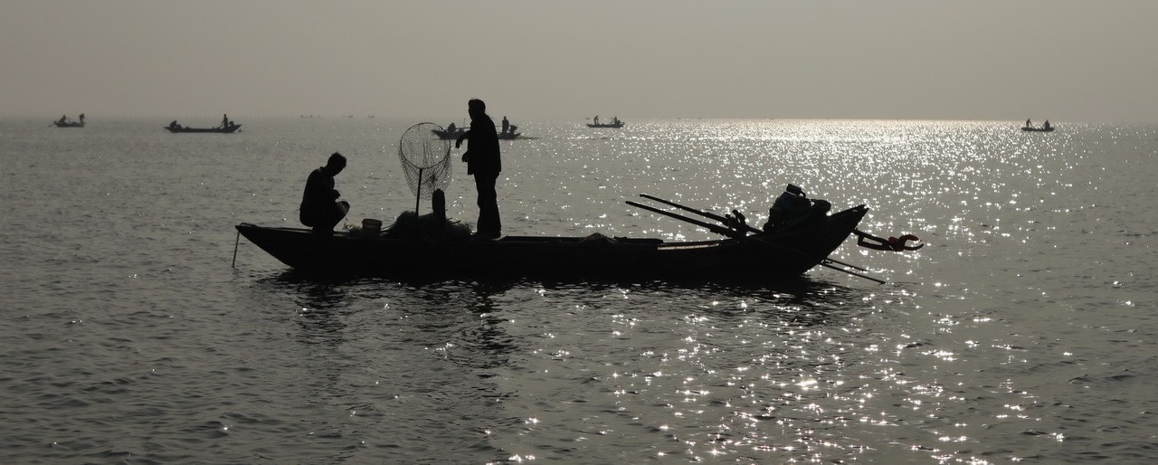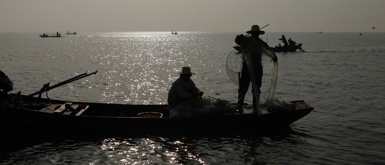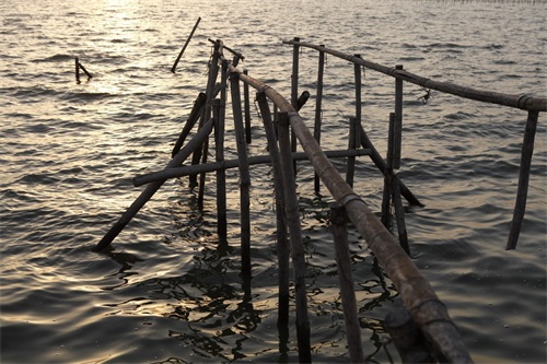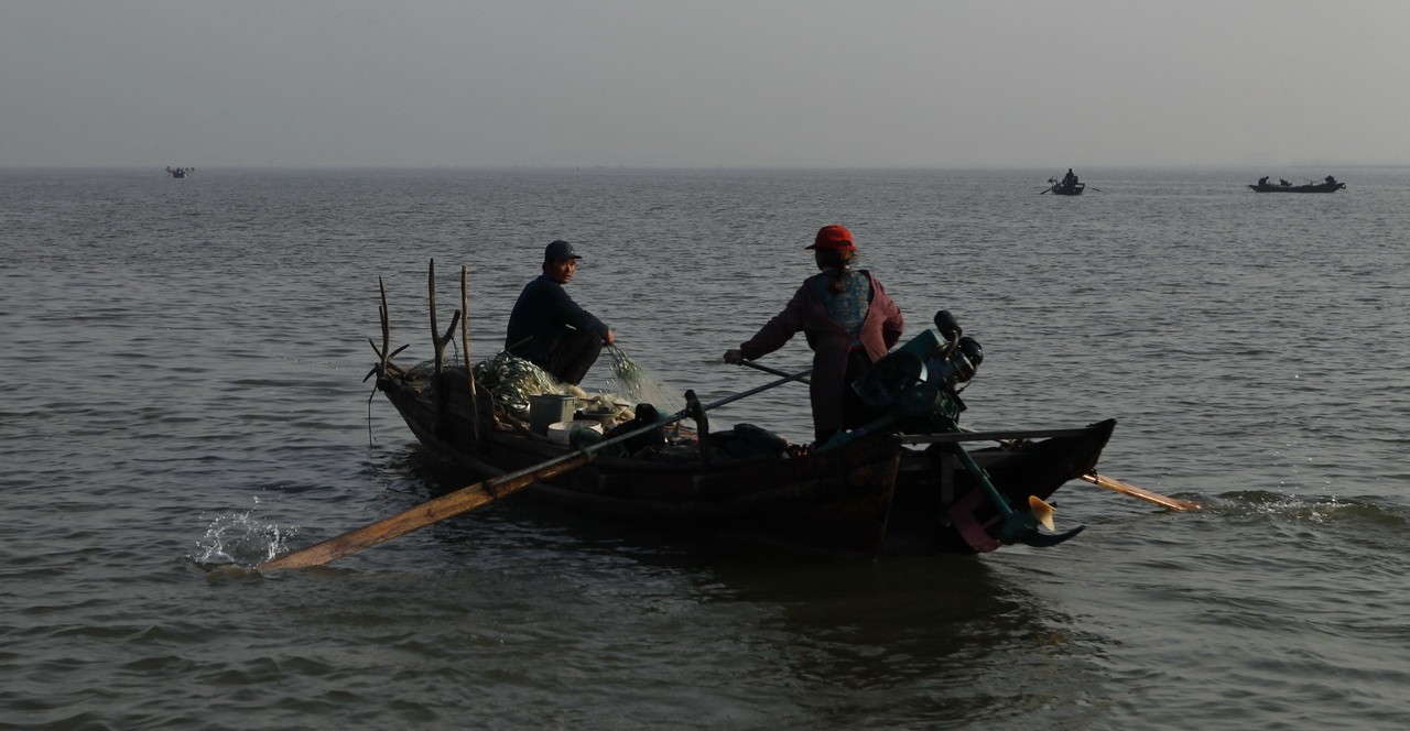 12月9日早晨,迎着朝霞拍摄捕鱼人。