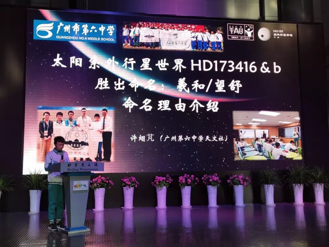 来自广州第六中学天文社的高二学生许翊芃介绍,在中国神话中,“羲和”是太阳女神,同时也被认为是中国古代最早的天文学家和历法制订者;“望舒”是为月亮驾车的女神,被当作月神。“这两个名字体现了恒星与行星之间的关系,具有美好的寓意,也象征着探索宇宙的精神。”他说。