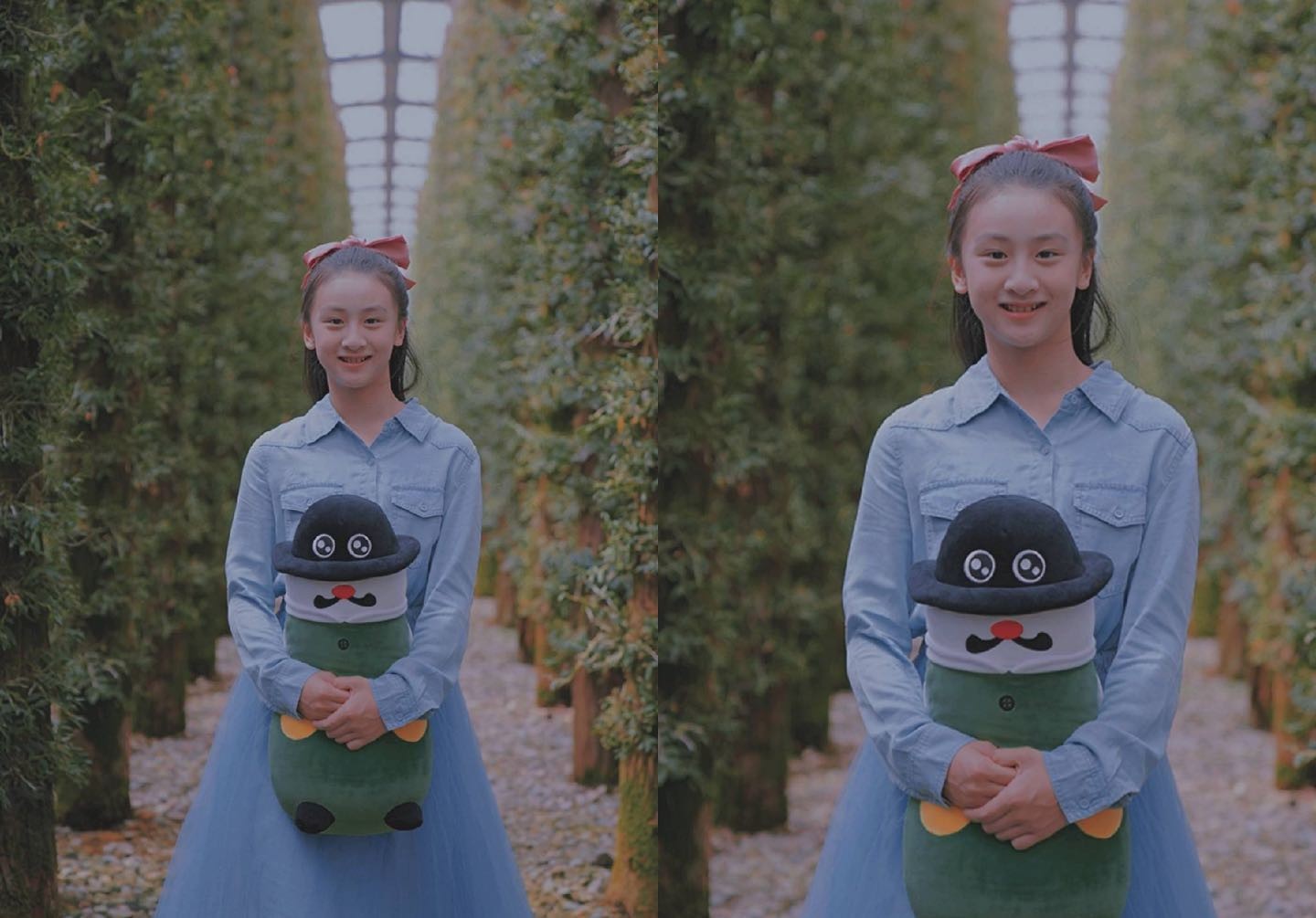 可以见得小小年纪的森碟对于服装的驾驭能力已经很优秀了,凭借着天生的好底子,森碟不仅个子高挑,四肢显瘦,鹅蛋脸也十分的上镜。