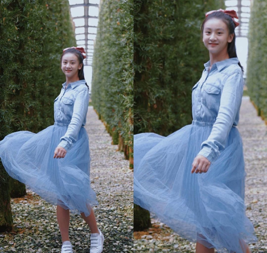 森碟的皮肤十分白皙,所以像这样的蓝色系裙装穿在她身上也是很耐看的。这两年来十分流行“拼接”元素。森碟的这身裙装就是将衬衫与纱裙结合在一起,造型十分的梦幻,具有少女感。~森碟成童装代言人!皮肤白皙鹅蛋脸上镜,站台颇有小大人模样