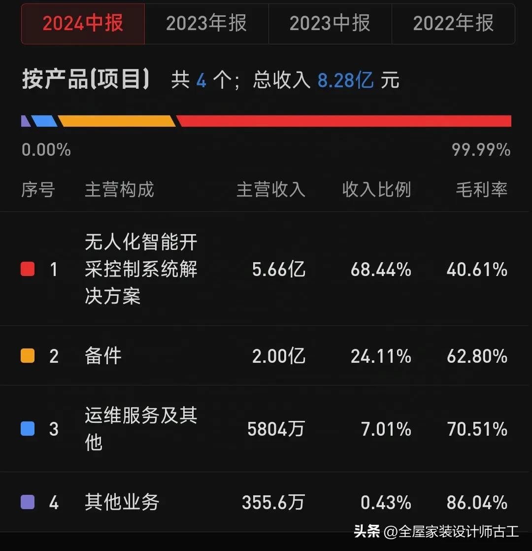 2024年,天玛智控发布财务中报,财务数据亮丽,各项收入毛利率全部2位数以上,各项业务收入数据如下: