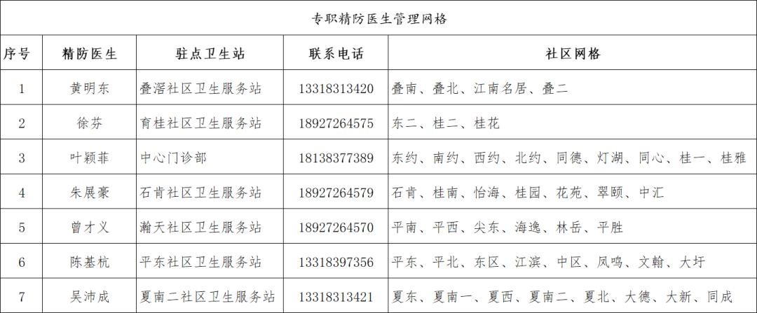随访服务:精防医生每季度随访一次,了解患者康复、生活、学习等情况,对病情进行初步评估。随访地点可以约定。