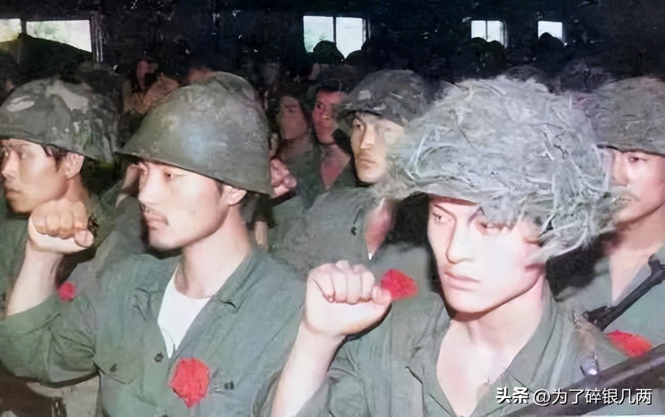 誓师大会上,战士们正在宣誓,看起来年龄都不大,在一些当年的视频中,有一些士兵才19岁。