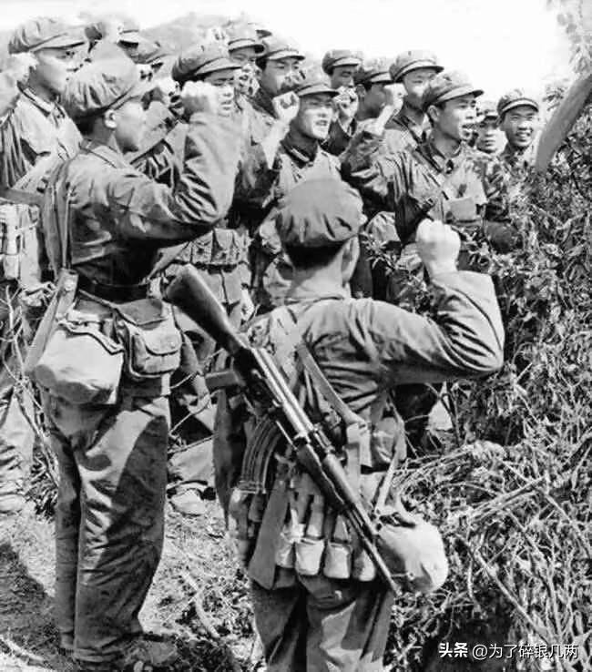 战士们正在宣誓,对越反击战我国伤亡2万多人,不知道这里有多少英勇的战士没有能够回来。