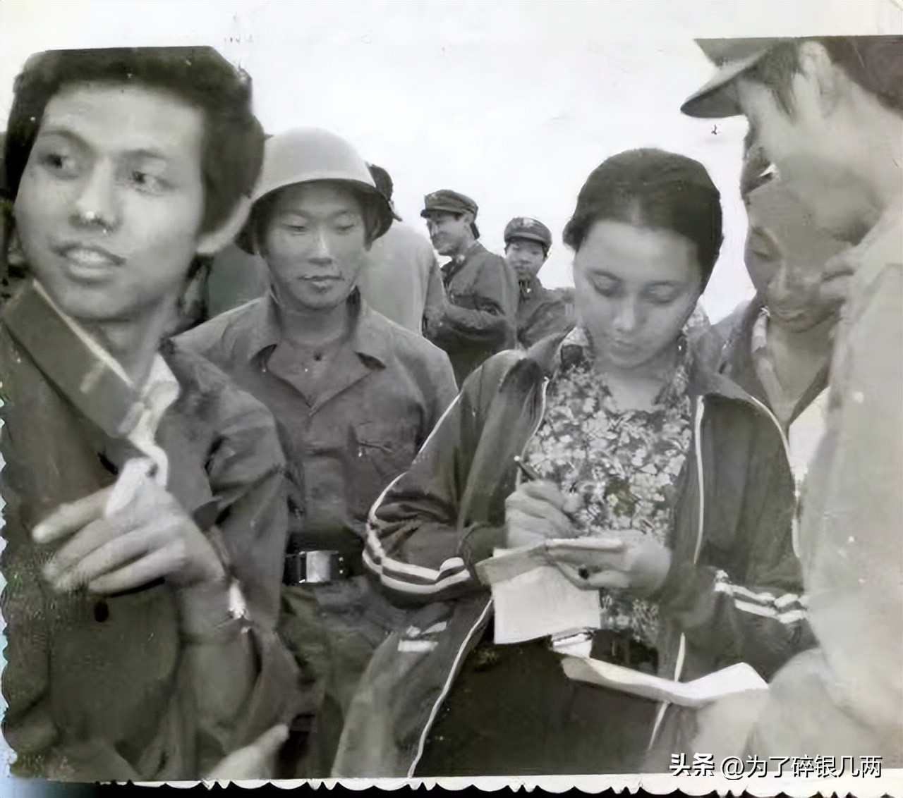 安徽黄梅戏周丽到前线进行慰问,然后给战士们签字合影,当时不少明星艺人都前往前线慰军。