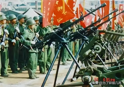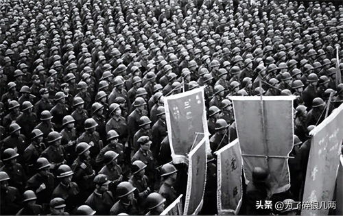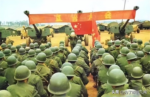 战士们正在参加誓师大会,战士们拿的应该是当时仿AK的56式,场面十分壮观。