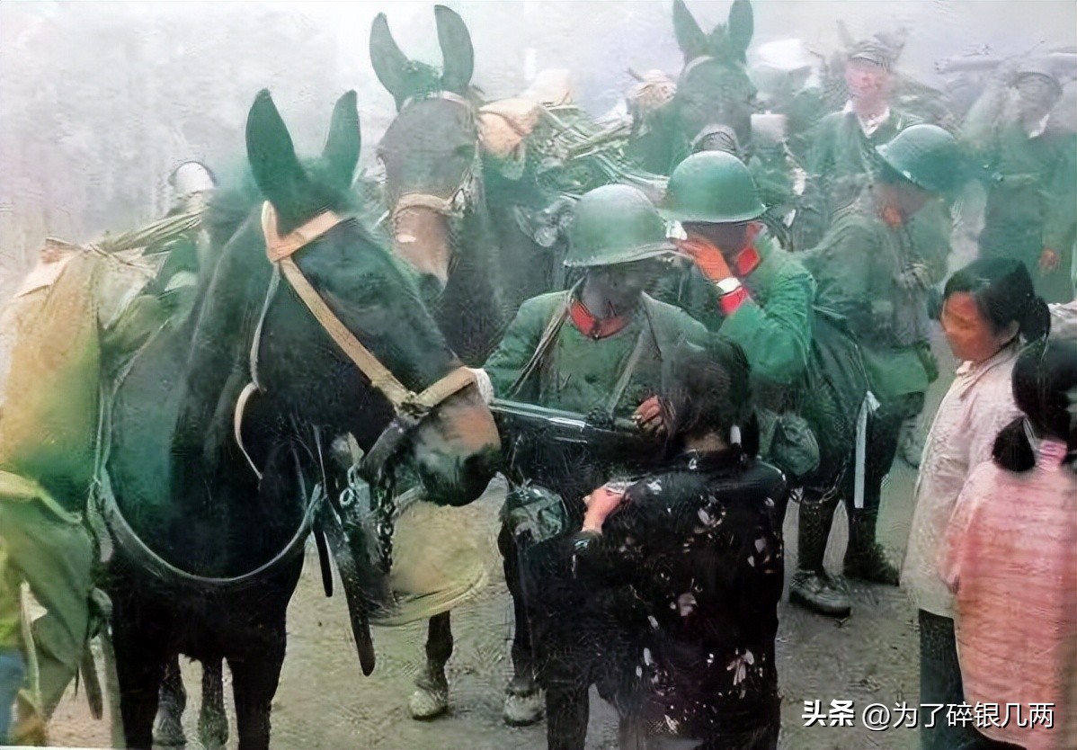 由于当时道路不好走,很多物资只能靠马匹运输,士兵们受到当地老百姓的欢迎,一些老百姓给士兵送水喝。
