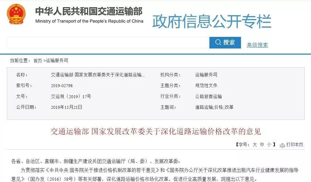 《关于深化道路运输价格改革的意见》