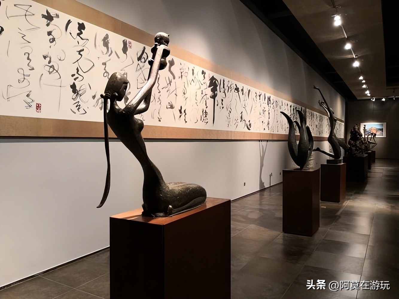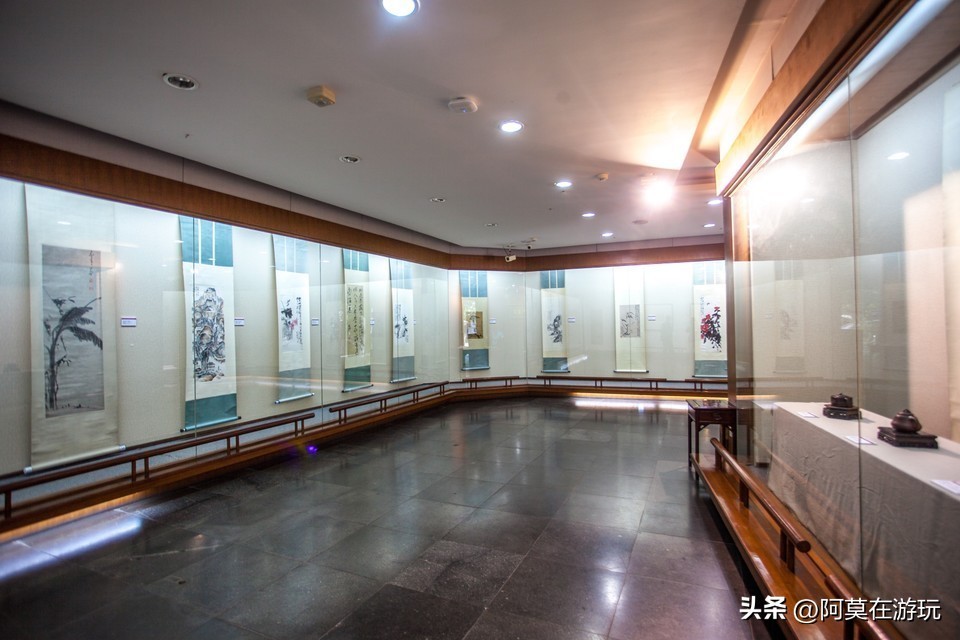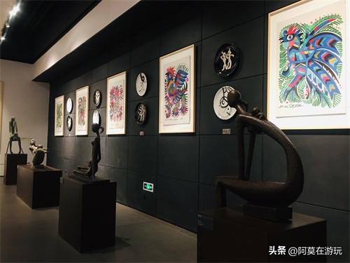 艺术馆共有三层,设立了多个展区。一楼以雕塑为主、二楼展示动物画和瓷塑、三楼则主要是书法作品。