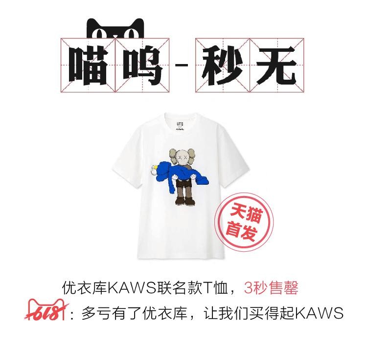 6月3日零点,优衣库KAWS联名款在天猫618上架,3秒即告售罄,甚至,这款产品还带动优衣库品牌在天猫的搜索量,增长37倍!