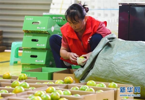 11月1日,在琼中黎族苗族自治县的绿橙加工厂,工作人员在打包琼中绿橙。 近日,海南琼中黎族苗族自治县琼中绿橙迎来上市季。2020年,琼中绿橙种植面积达2.9万亩,挂果面积1万亩,预计产量将达到1000万斤。 新华社记者 杨冠宇 摄