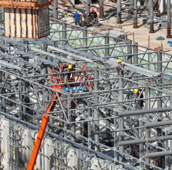 工作人员正在蜀山泵站进行施工