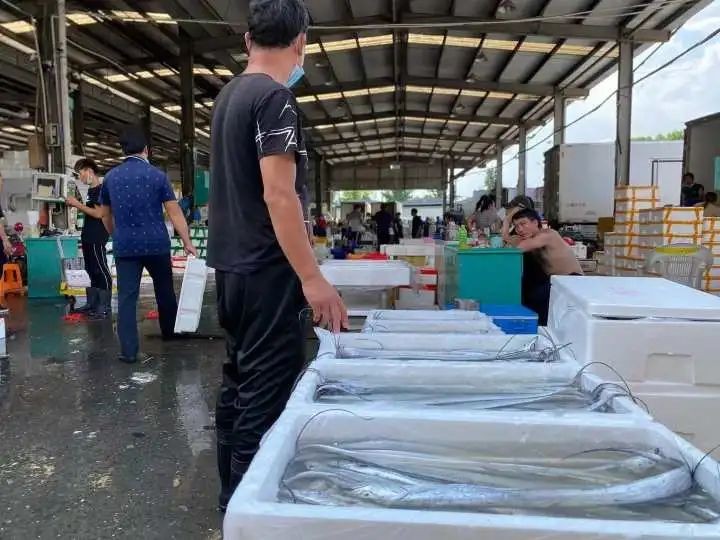 鲳鱼、带鱼、小黄鱼……从家乡发来的海鲜正在卸货,台州老板陈钱军正在摊位上忙碌着。