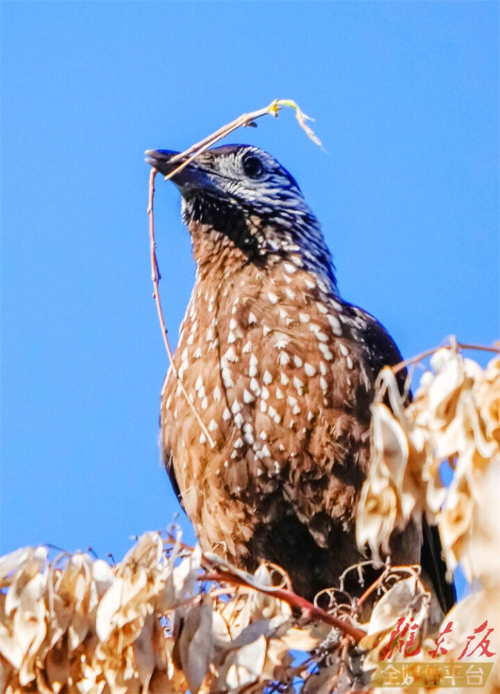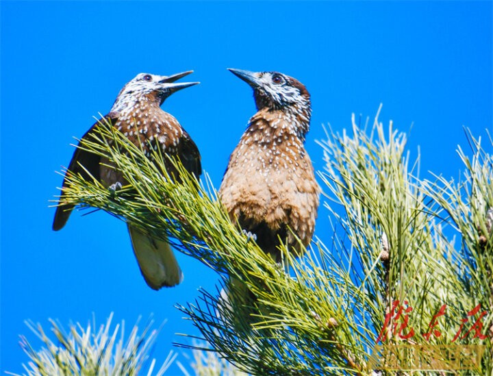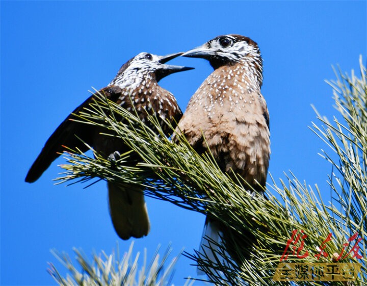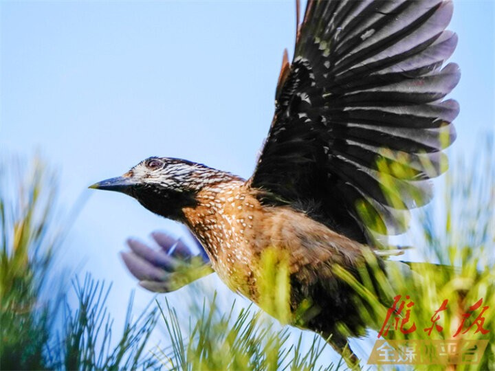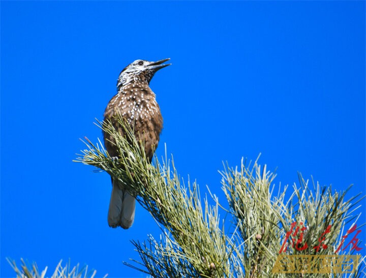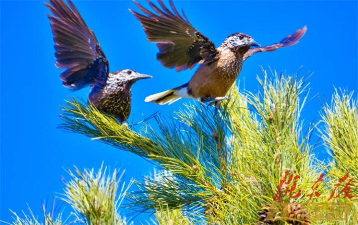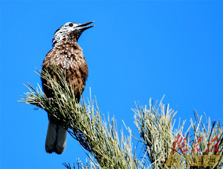星鸦,鸦科星鸦属鸟类,体长29—36厘米,翼展55厘米,体重50—200克。体羽大都咖啡褐色,具白色斑;飞翔时黑翅,白色的尾下覆羽和尾羽白端很醒目。幼鸟体羽较淡,在成鸟为白色点斑和条纹的相应位置全为淡棕色代替,并分布至头部。目前,列入《世界自然保护联盟》2016年濒危物种红色名录。