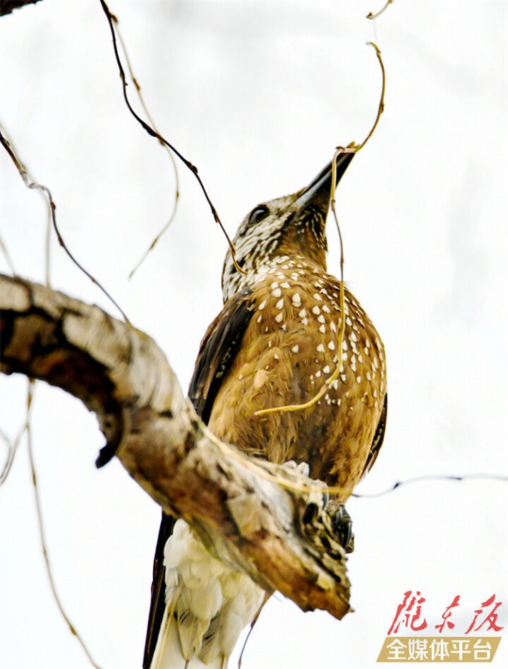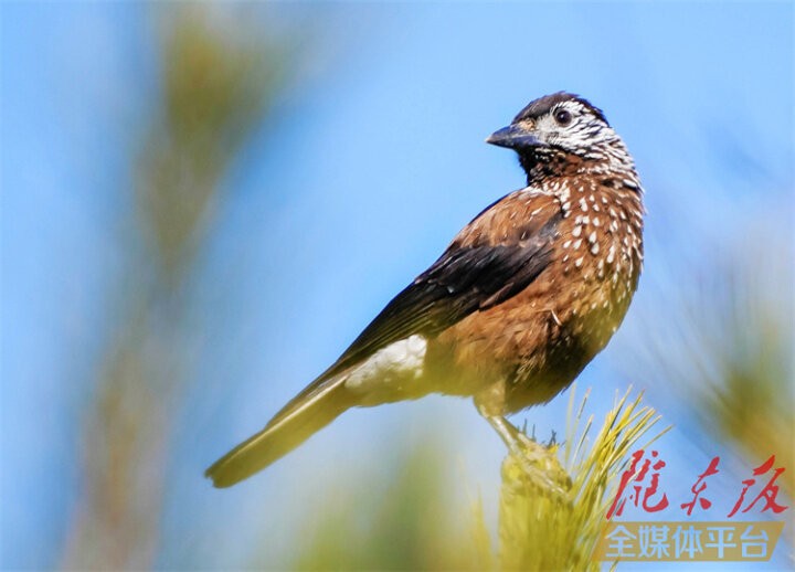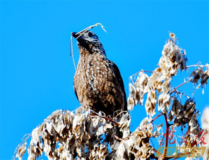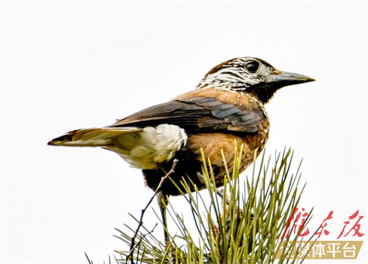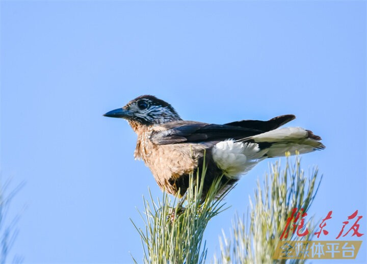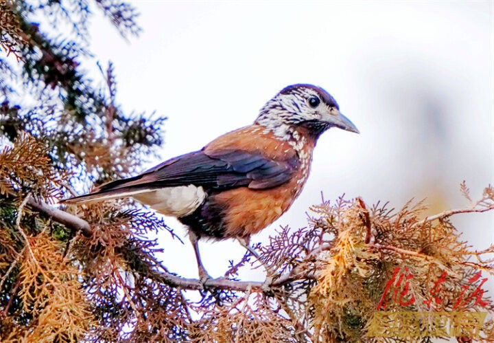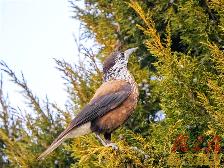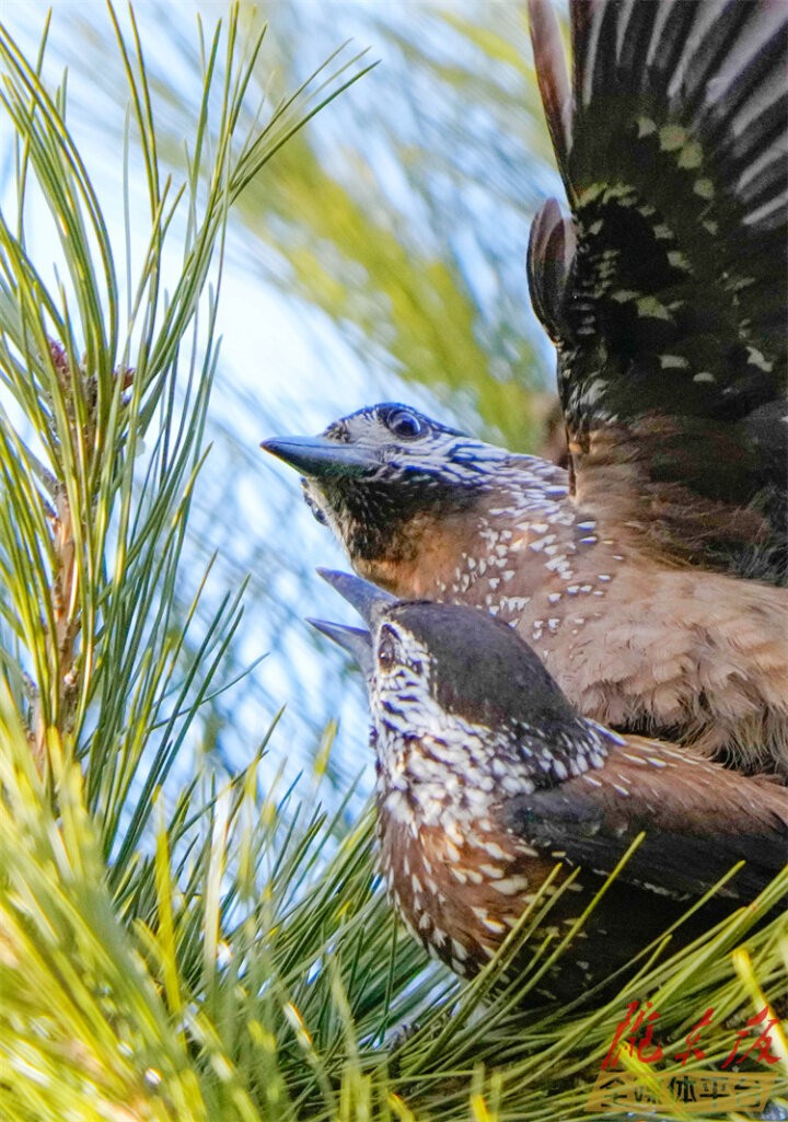星鸦,鸦科星鸦属鸟类,体长29—36厘米,翼展55厘米,体重50—200克。体羽大都咖啡褐色,具白色斑;飞翔时黑翅,白色的尾下覆羽和尾羽白端很醒目。幼鸟体羽较淡,在成鸟为白色点斑和条纹的相应位置全为淡棕色代替,并分布至头部。目前,列入《世界自然保护联盟》2016年濒危物种红色名录。