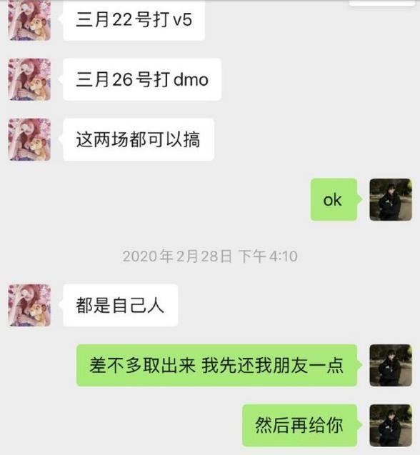 不过从举报者公布的信息来看,在博彩人员找上他之前,似乎就已经参与了假赛。魏延公然在聊天记录中,称V5与DMO战队为自己人,都可以明着演战绩。并且已经存在了熟人联手,操控比赛胜负的念头,除了魏延之外应该还有熟人在进行着假赛。而下注的内容涉及到一血、小龙等游戏内行为。