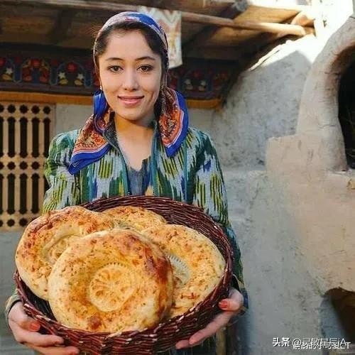 当地人的主食以馕为主,一部分人也吃面包。馕体现了当地的历史、文化、人文等诸多方面。烤囊的现场美轮美奂,让人垂涎欲滴。