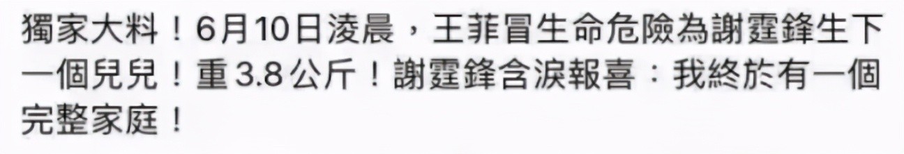 6月11日,有港媒爆料称,王菲已经在9日凌晨给谢霆锋生下了一个儿子,引起网友热议。