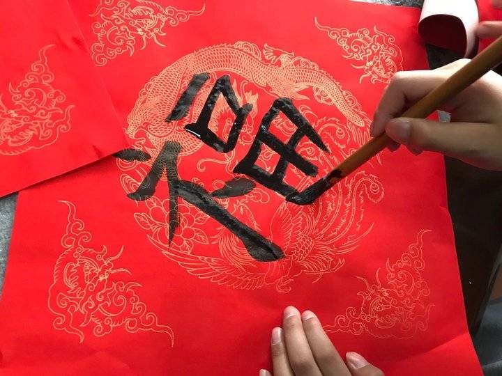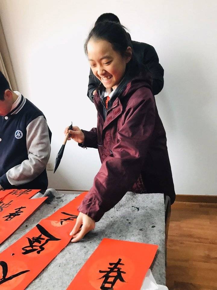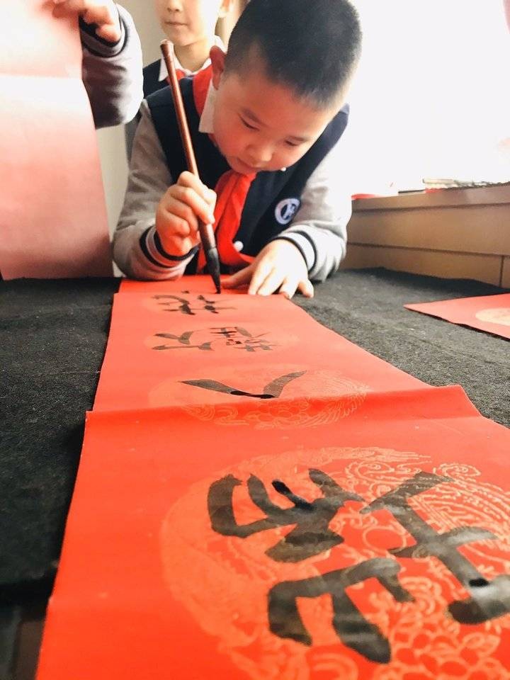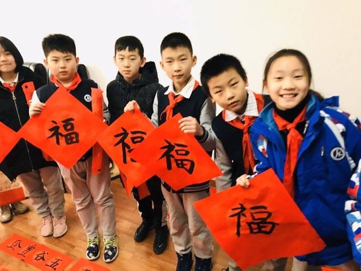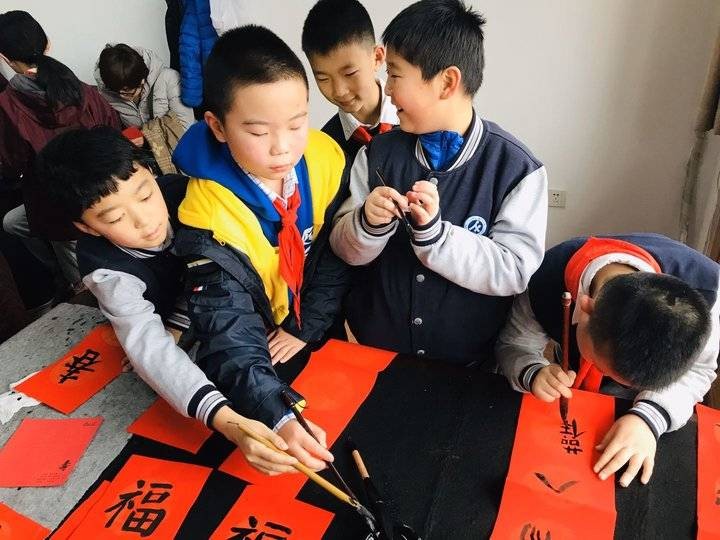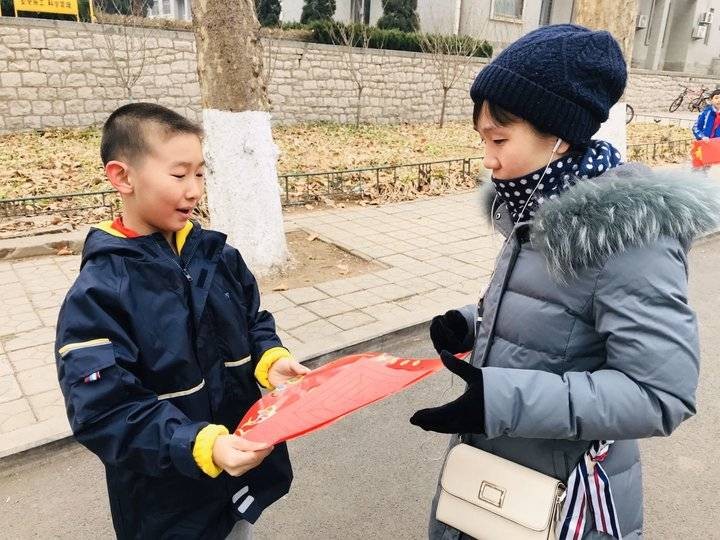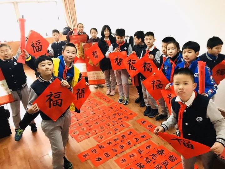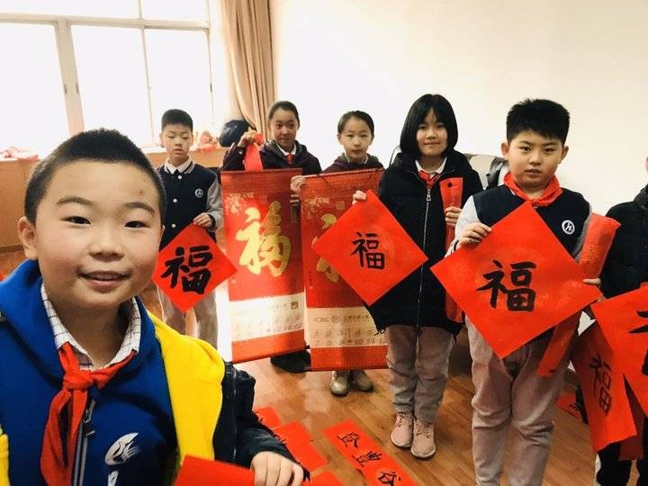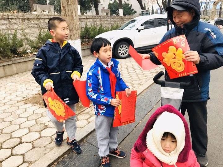 16日,山师附小2016级三班的小学生们走上街头走进校园,为市民发送"福"字和"创建无烟花爆竹社区"倡议书。孩子们还自己动手写"福"字、写春联、剪窗花,在传统民俗中感受火红的年味。