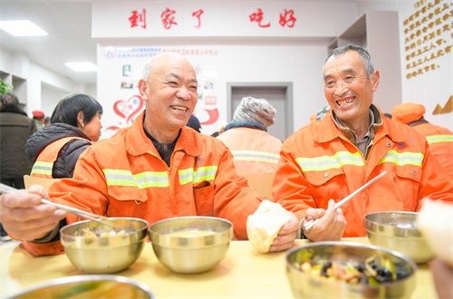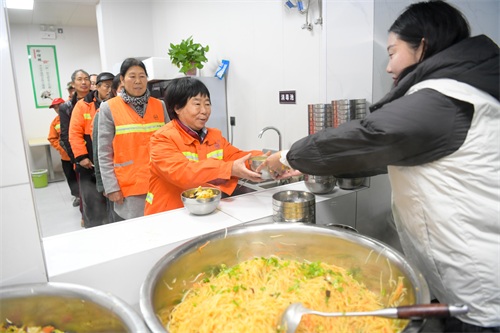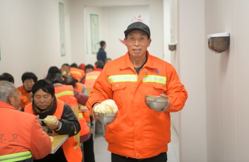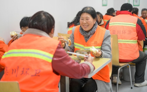 11月20日清晨,洛阳市栾川县的“环卫天使爱心早餐点”内,环卫工人们正欢聚一堂,享受着免费的早餐。