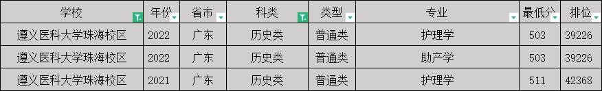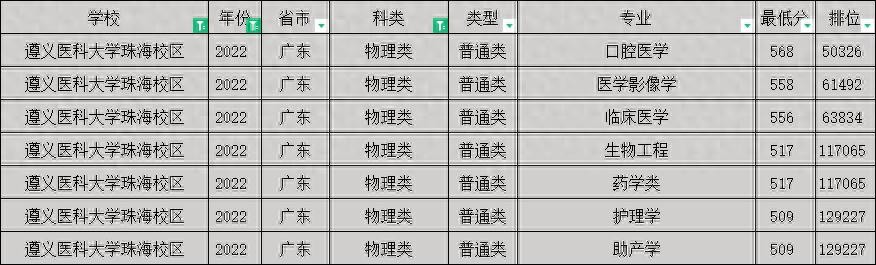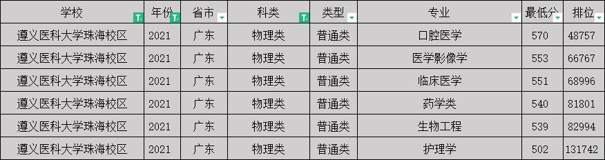 遵义医科大学2021-2022年广东各专业分数线(含珠海校区)