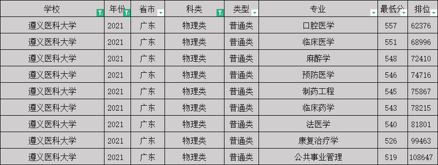 2021年遵义医科大学物理类分数线 遵义校区