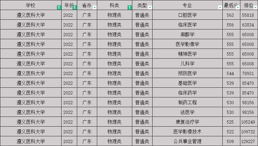 2022年遵义医科大学物理类分数线 遵义校区