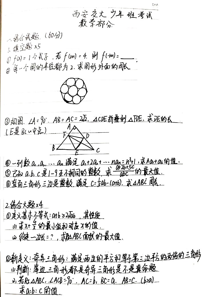 下面带大家一起看一下考生回忆的西安交大少年班考试的数学试题。(注:纯脑力回忆,可能会和实际题目有出入)