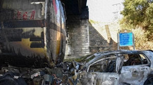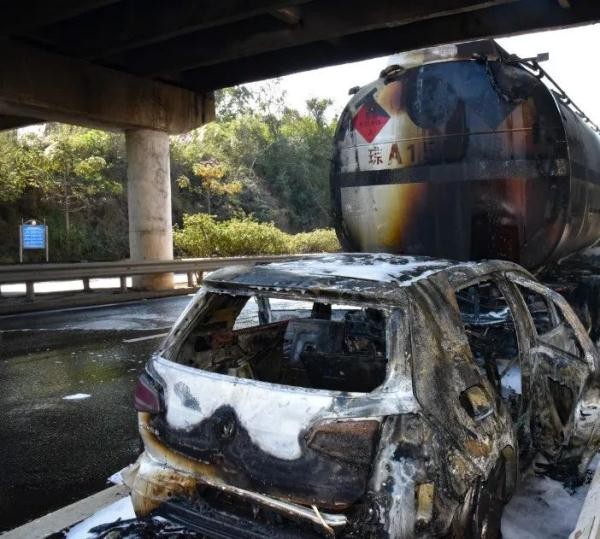轿车追尾一存有24吨柴油的油罐车,起火燃烧!