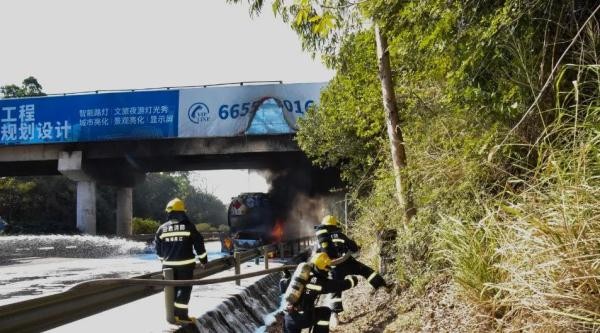 破裂漏油导致该车起火燃烧