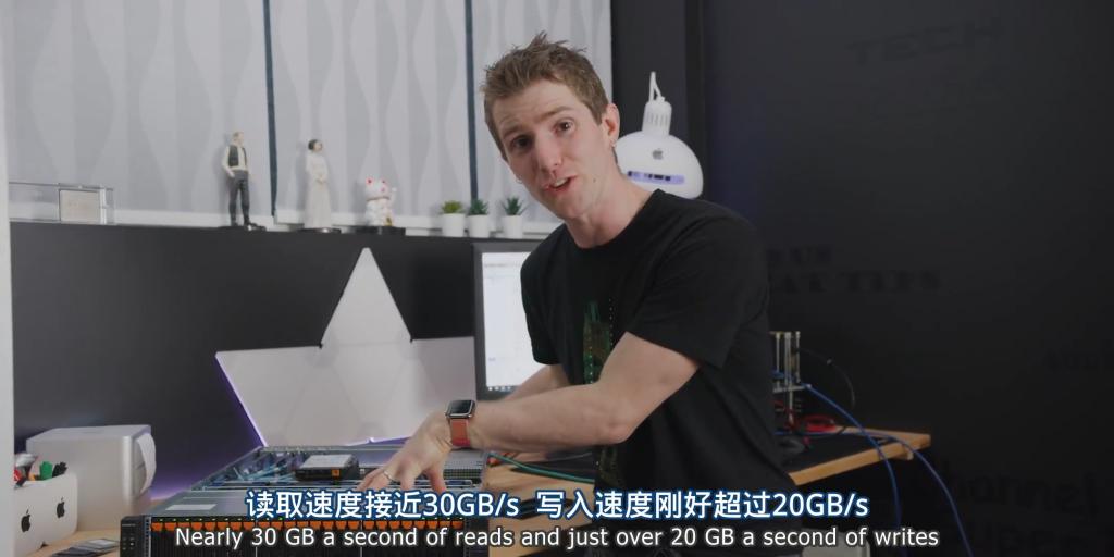 这个硬盘阵列的速度也不过 20-30GB/s,就已经能完全让 CPU 和内存忙不过来,导致一台性能远超家用电脑的服务器间歇性抽风。